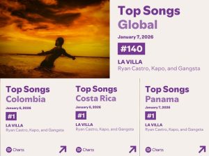 Miami, FL (9 de enero de 2026) – Ryan Castro, el king de dancehall y uno de los artistas colombianos más influyentes del género urbano arranca el 2026 con el estreno del video oficial de “La Villa”, su explosiva colaboración con Kapo. El visual llega mientras el tema continúa su ascenso acelerado en las plataformas de streaming, ingresando al Global Chart de Spotifyy alcanzando el #1en mercados clave, consolidando a “La Villa” como uno de los himnos latinos más virales del momento.