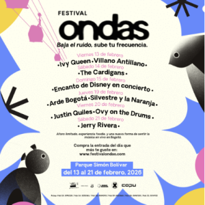 ondas aterriza en la agenda cultural de Bogotá como un ciclo de conciertos, distribuidos en diferentes días, en los que uno o dos artistas son protagonistas de la noche. En ondas disfrutamos los shows completos y sin afán, así que nuestra fiesta es en un mismo escenario. ¡Nos vemos en febrero del 2026!